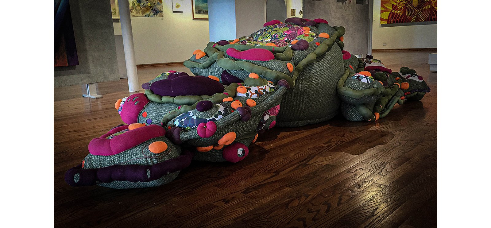 36” X 36” X 144” Functional Sculpture(Screen Printed Fabric, Machine Stitching, Assorted Found Fabrics)