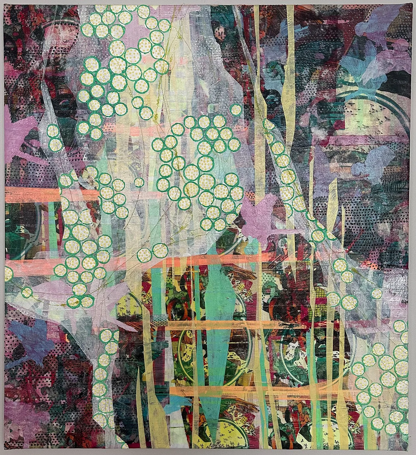(Gel-Medium Transfers using Digital Prints, Stamping, and Acrylic Paint on Canvas)