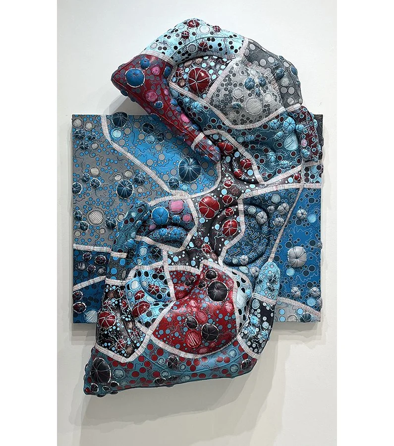 (Quilted and Batted Canvas, Stamping, White Stretched Polyester, Fiberfil, Power-tex, Acrylic Paint)